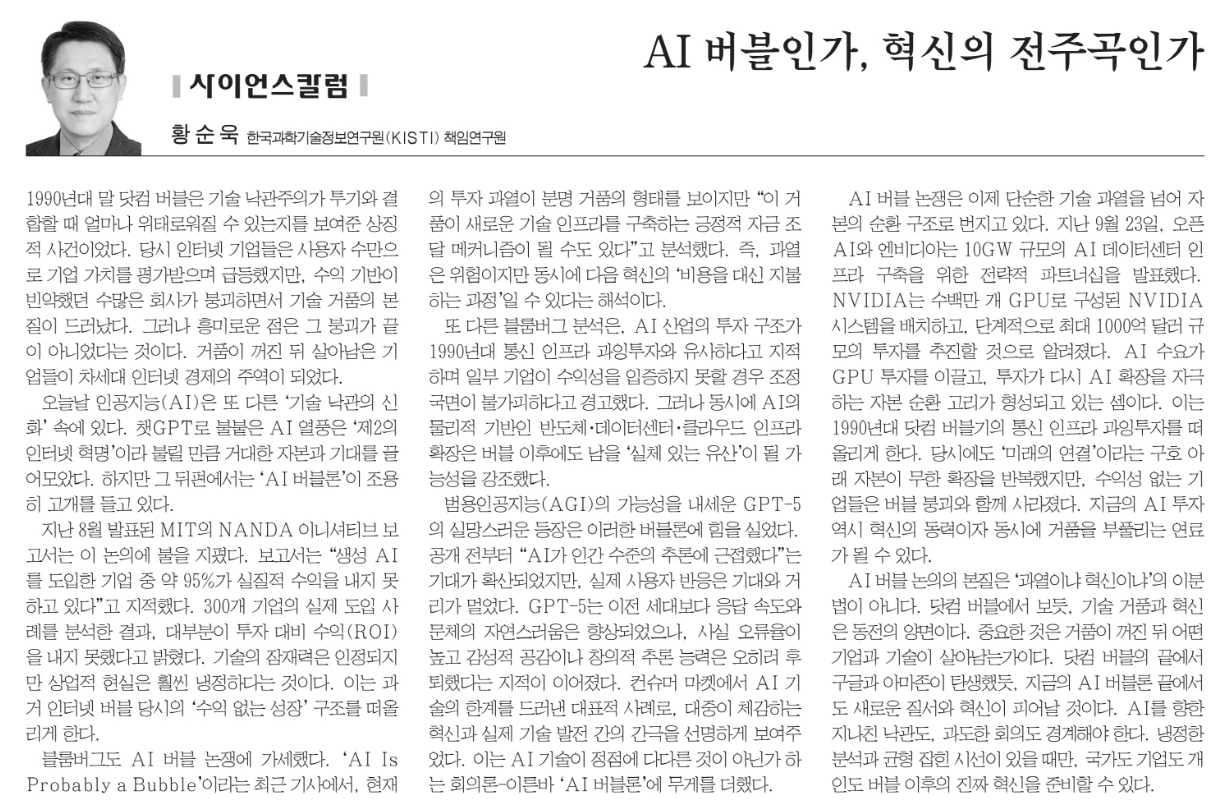 [사이언스칼럼] AI 버블인가, 혁신의 전주곡인가